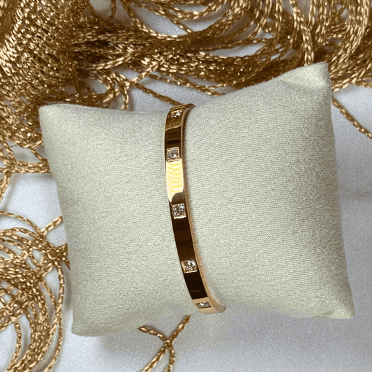 18K PVD Gold Minimalist Square Zircon Station Bangle: Lena