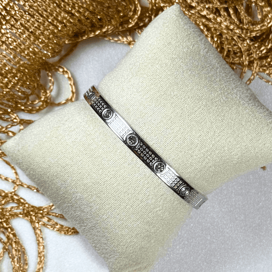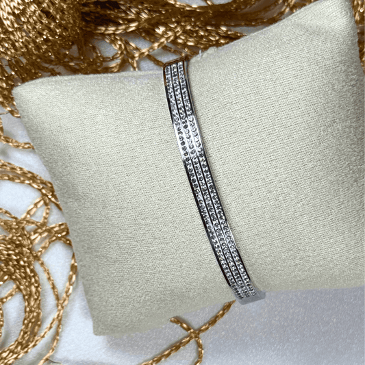 18K PVD Silver Triple Row Pave Zircon Bangle: Eliza