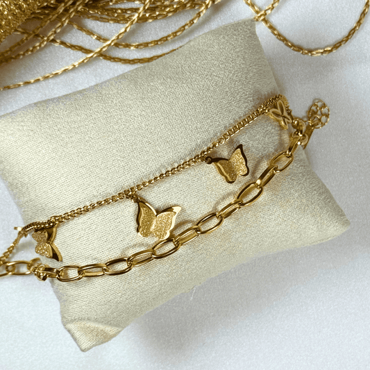 18K Gold Plated Layered Butterfly Charm Bracelet: Kaida