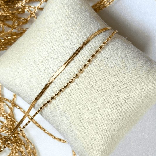 18K PVD Gold Minimalist Herringbone Chain Bracelet: Aurora