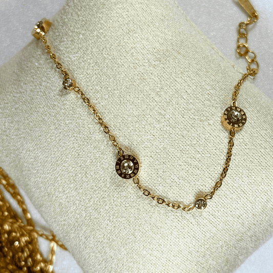 18K Gold Plated Zircon Station Delicate Chain Bracelet: Roman