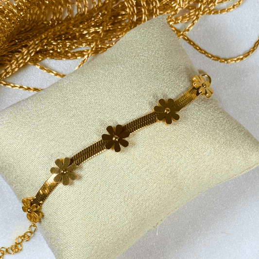 18K PVD Gold Floral Snake Chain Bracelet: Abbie