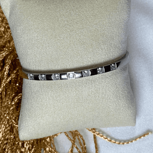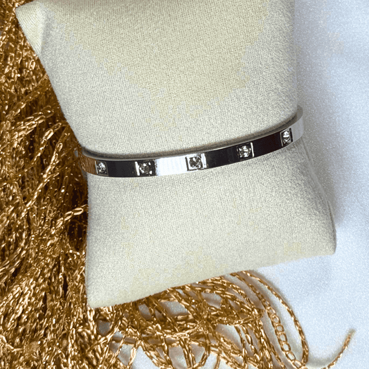 18K PVD Silver Minimalist Square Zircon Station Bangle: Lena
