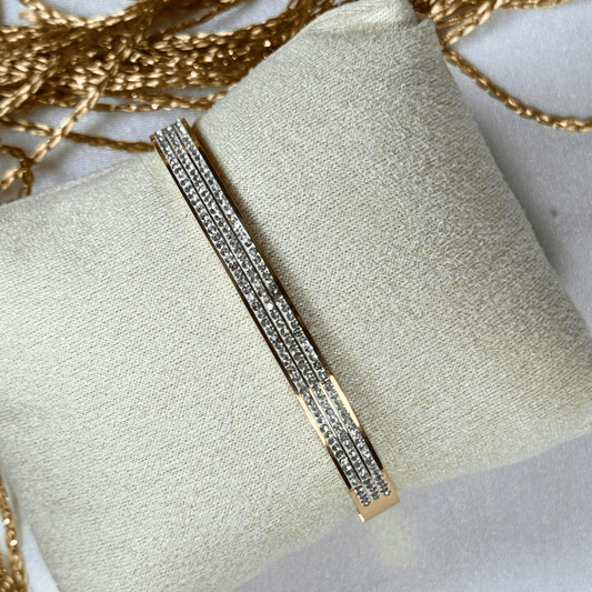 18K PVD Gold Triple Row Pave Zircon Bangle: Eliza