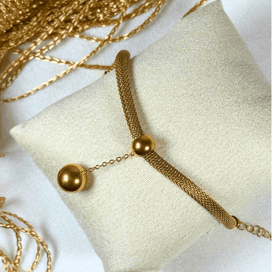18K Gold Plated Mesh Chain & Ball Drop Bracelet: Midas Mesh