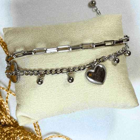 PVD Silver Layered Heart Charm & Paperclip Chain Bracelet: Valentina
