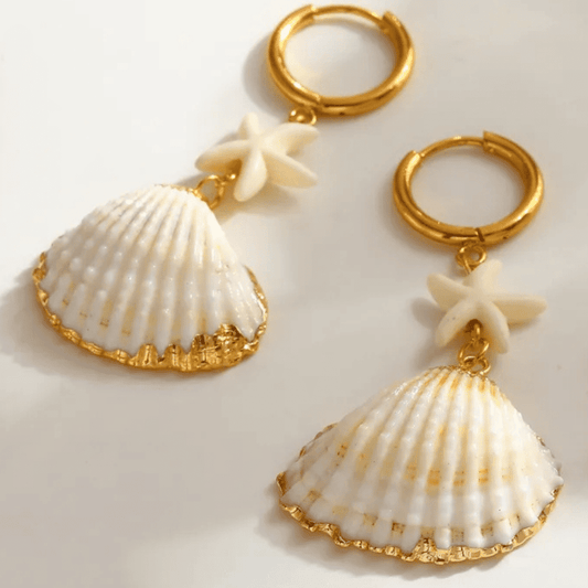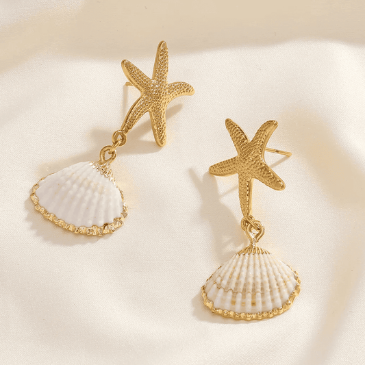 18K PVD Gold Starfish Shell Drop Earrings: Marisol
