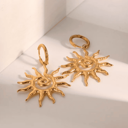 18K PVD Gold Sun Burst Dangle Earrings: Summer
