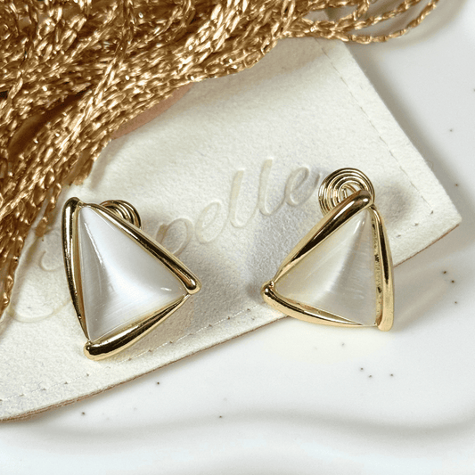 Gold-Tone White Enamel Triangular Clip-On Stud Earrings: Etty