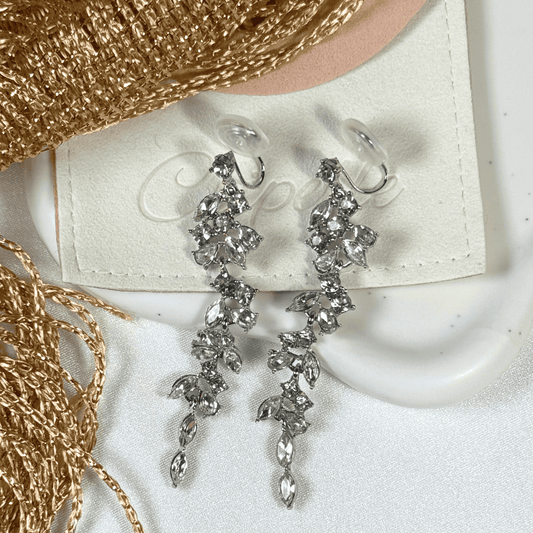 Silver-Tone Crystal Cascading Clip-On Dangle Earrings: Kleo