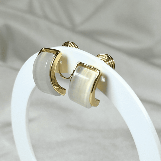 Gold-Tone Ivory Inlay Rectangular Clip-On Stud Earrings: Lilie