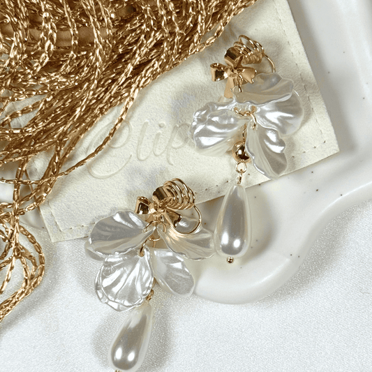 Gold-Tone Teardrop Pearl & Petal Clip-On Dangle Earrings: Nola