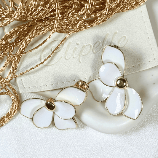 Gold-Tone White Enamel Half-Flower Clip-On Stud Earrings: Orelia