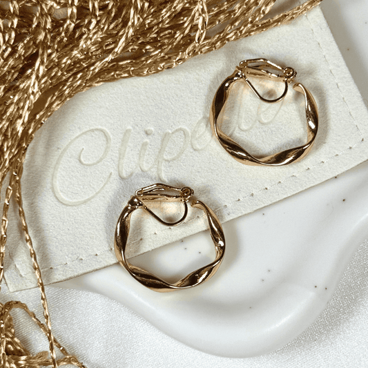 Gold-Tone Wavy Organic Clip-On Hoop Earrings: Peony