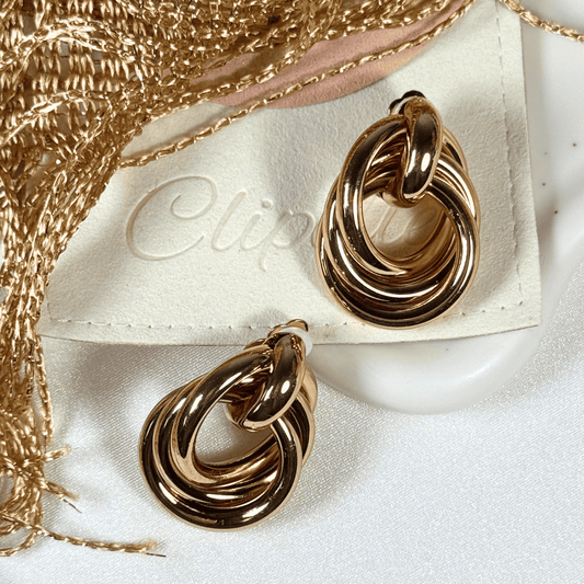 Gold-Tone Sculptural Knot Clip-On Hoop Statement Earrings: Rina