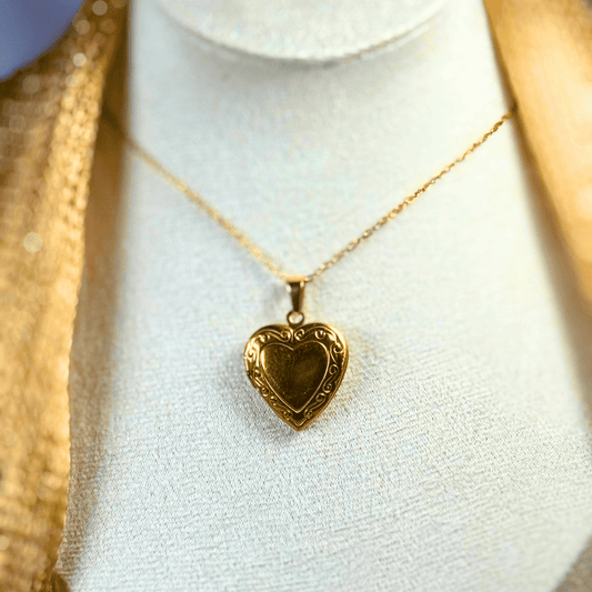 18K PVD Gold Heart Locket Pendant Necklace: Cady