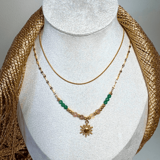 18K PVD Gold Layered Sunburst Pendant Necklace Set: Elaine