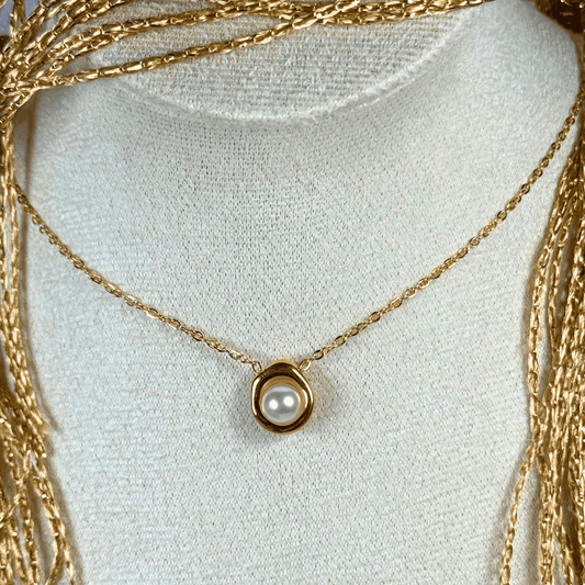 18K PVD Gold Pearl Pendant Necklace: Fiona