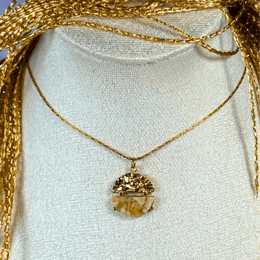 18K PVD Gold Natural Stone Pendant Necklace: Merida Coffee