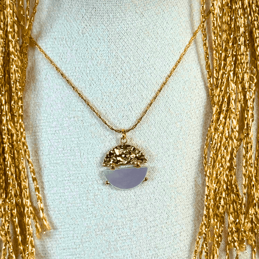 18K PVD Gold Natural Stone Pendant Necklace: Merida White