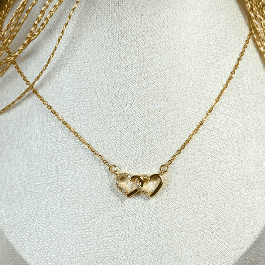 18K PVD Gold Heart Rhinestone Pendant Necklace: Cally